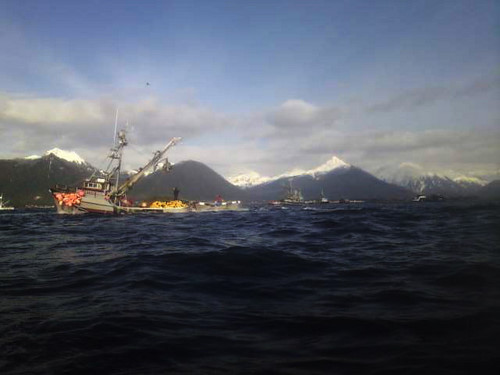 Seiners fish for herring during the first opening of the 2013 Sitka sac roe herring season. (Photo by Daniel Olbrych)
