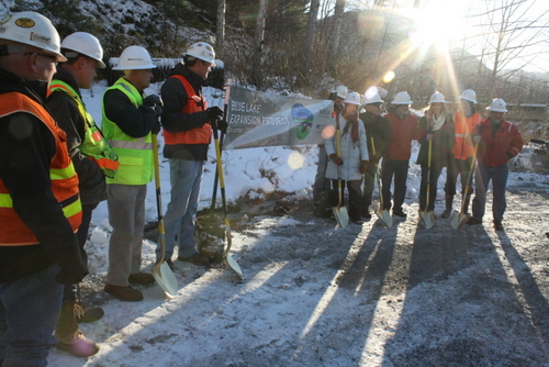 The Sitka Assembly and other city officials held a groundbreaking at noon Friday for the Blue Lake dam expansion. Work actually began earlier this month; Friday’s event was ceremonial. The more than $90 million construction contract will raise the dam by about 80 feet and create additional hydropower for Sitka. Residents will see rate increases to help pay for the project. The city also hopes a state grant will come through (it’s asked for $43 million) and is preparing to issue bonds to pay for the project. (Photo by Ed Ronco/KCAW)