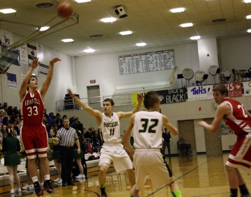 Hesse – They played an interesting defensive set. It was still the 2-3 zone, but a lot more player movement. The zones shifted around the floor a little bit, they followed their players out farther than you normally would in a 2-3 zone, and cut off the three-point shooting, which Petersburg usually stretches the floor a little bit with. But they still had the zone quality that let them collapse down on the big men. Another thing that changed the game was foul trouble. Colby Bell, who is one of Petersburg’s 6’-6” big men — very tall, great room protector — fouled out in this game. He had three fouls by halftime. It kept him on the bench most of the game, which kind of opened things up a bit for Mt. Edgecumbe at the other end of the floor.