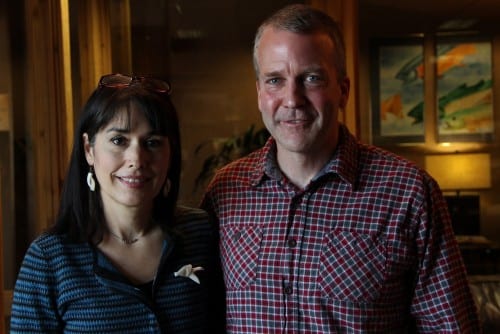 Republican Dan Sullivan, with his wife Julie Fate Sullivan, at the Sitka Westmark on April 12. Sullivan hopes to challenge incumbent U.S. Senator Mark Begich. (KCAW photo/Rachel Waldholz)