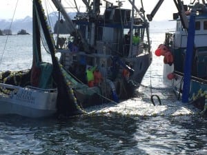 The Star Shadow pumps fish during the second opening of the Sitka Sound sac roe herring fishery, on March 19, 2015. (Photo courtesy of Big Dog Fish Company)