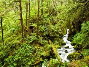 A beautiful stream flowing through a temperate rainforest, Tongass National Forest, Sitka, Alaska