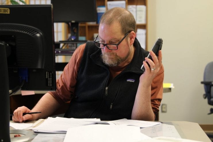 Ken Fate is no stranger to being a megaphone for public information. The former general manager for Raven Radio took over for longtime Sitka LIO Marie Murray last year. (Emily Kwong/KCAW photo)