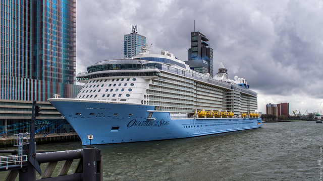 The 5,000 passenger Ovation of the Seas, in the Port of Rotterdam. CLAA’s Fred Reeder argues that being able to dock a Quantum-class ship like the Ovation (the second-largest class of cruise ships afloat) could bring an additional 100,000 passengers to Sitka each year, and an additional $600,000 in local sales taxes. (Flickr photo/Frans Berkelaar)