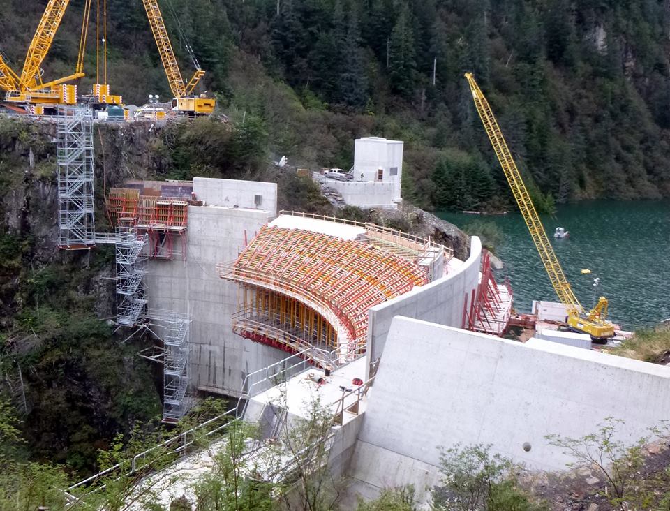 The Blue Lake Dam, as it looked in September, 2014. Although this wasn’t Bertacchi’s project, he says “I think Blue Lake will be a good idea.” At current load growth (3.4-percent), all excess power from the project will be used up in 5-7 years. Then the Electric Department will try to incentivize conservation, “or we could look at (a new hydro project at Lake) Takatz.” (KCAW file photo)