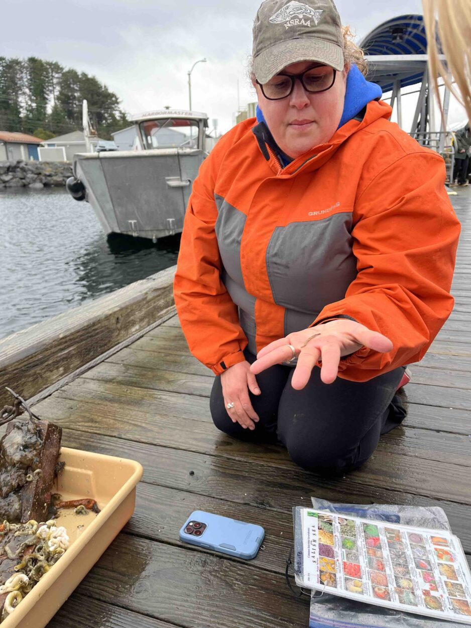 “I think especially for the ocean, we all see it every day, but a lot of times we don’t realize quite everything that’s down there,” she says. “And for a lot of the kids, what’s really fun about this is they’ve seen salmon, they’ve seen humpbacks, they’ve seen herring, but they haven’t seen, like, this plethora of worms and the plethora of chitons and all these things that they had no idea were right here in our harbors.”