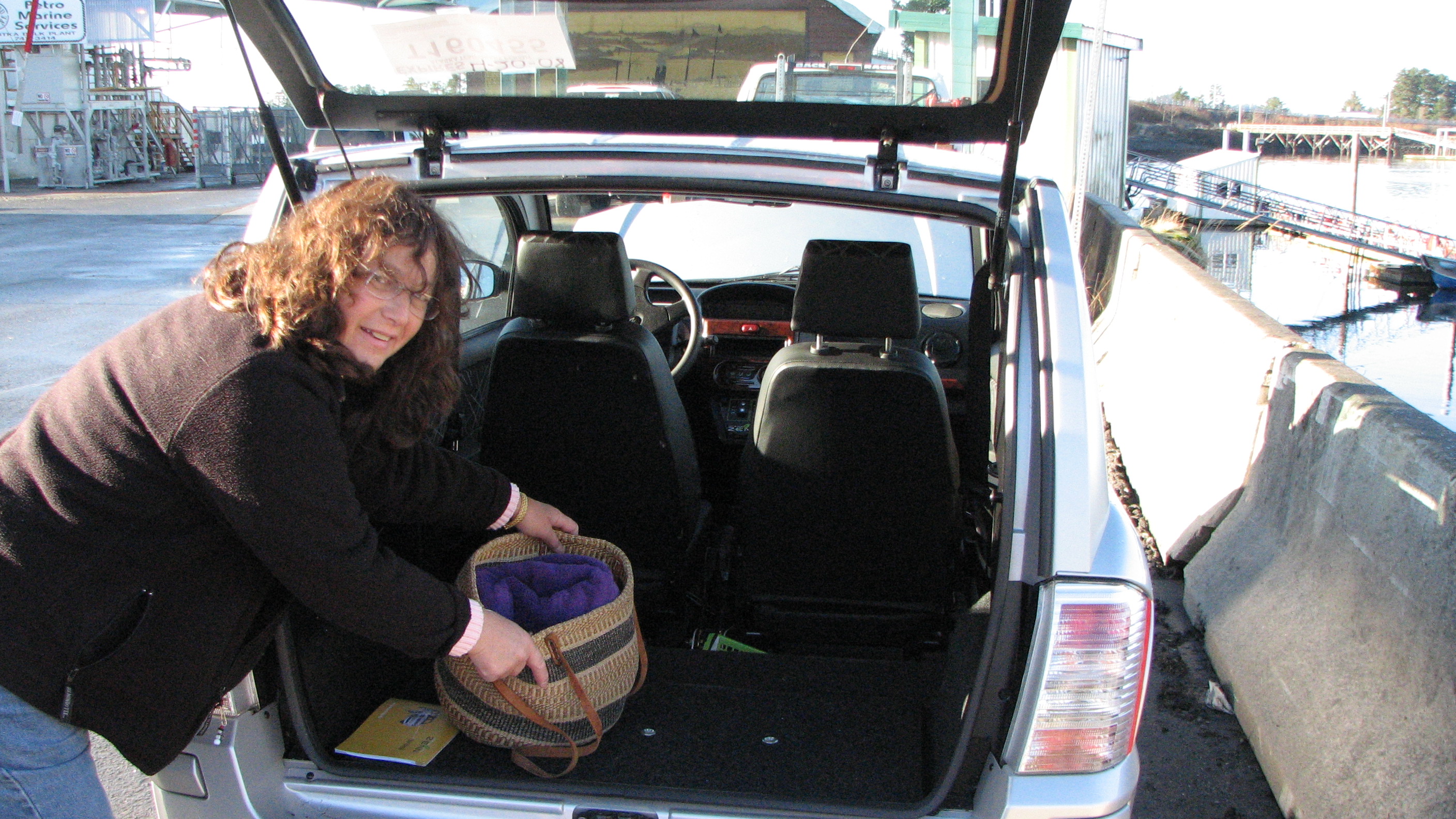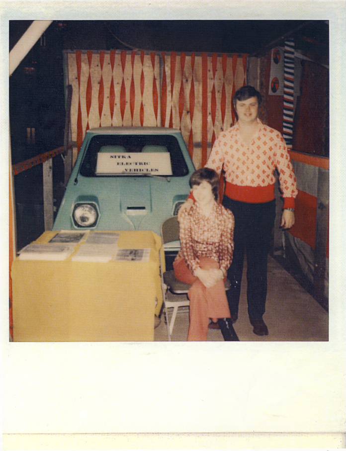 SITKA, ALASKA John and Barb Tatum with their Vanguard Citicar at Sitka's Harrigan Centennial Hall c. 1975 (photo courtesy Barb Lessard)