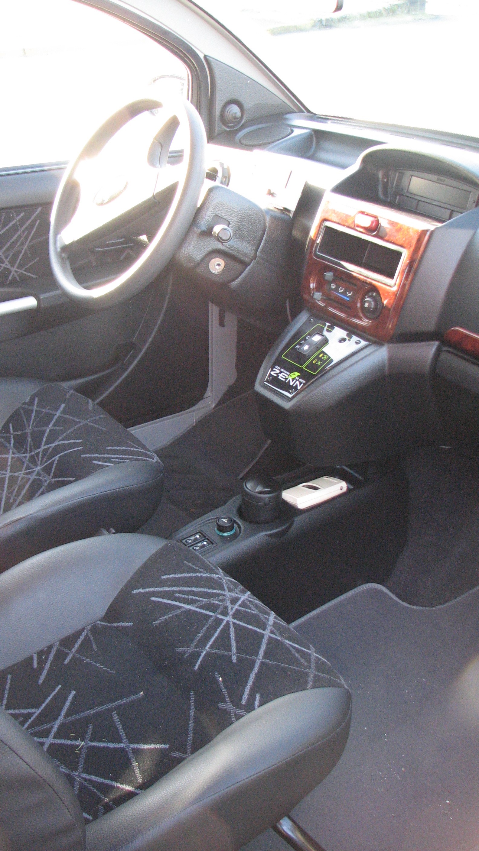 The ZENN seats two. It has an aluminum alloy chassis and a body made from ABS plastic panels.