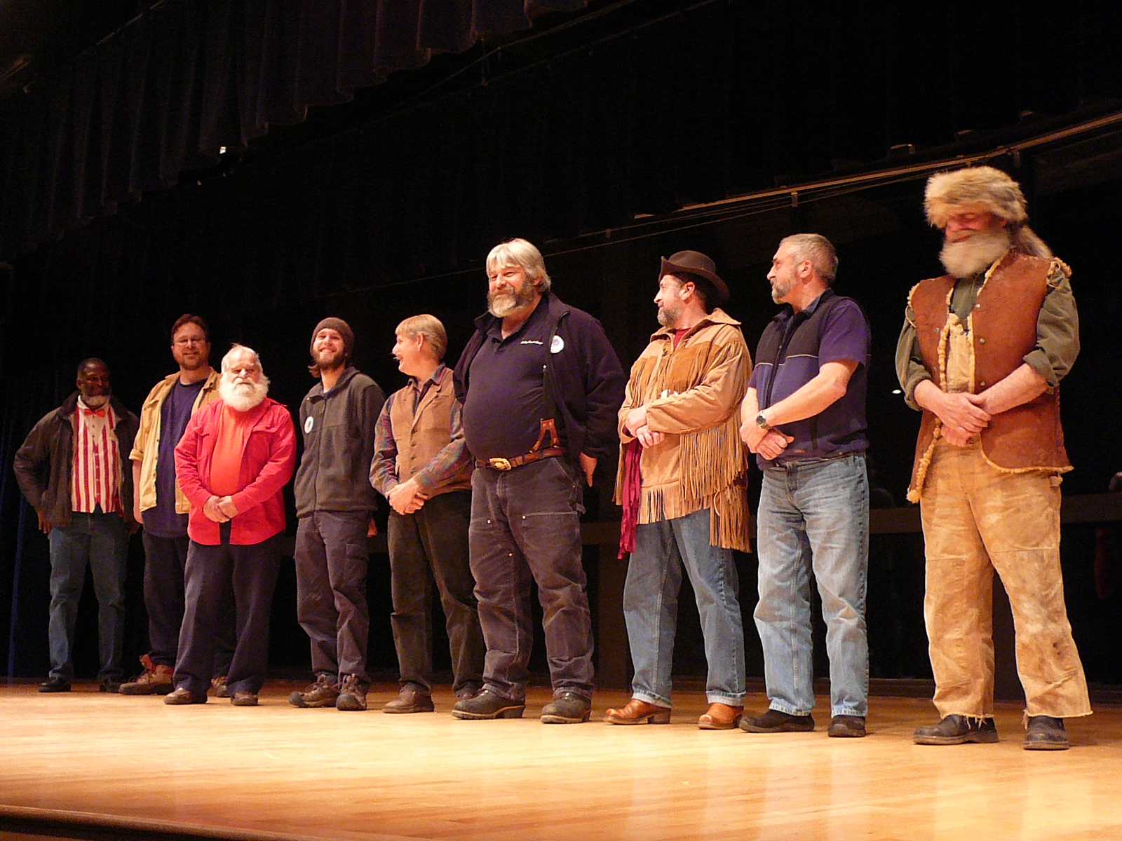 Beard contestants line up at the Centennial Hall Variety Show. Pete Karras,