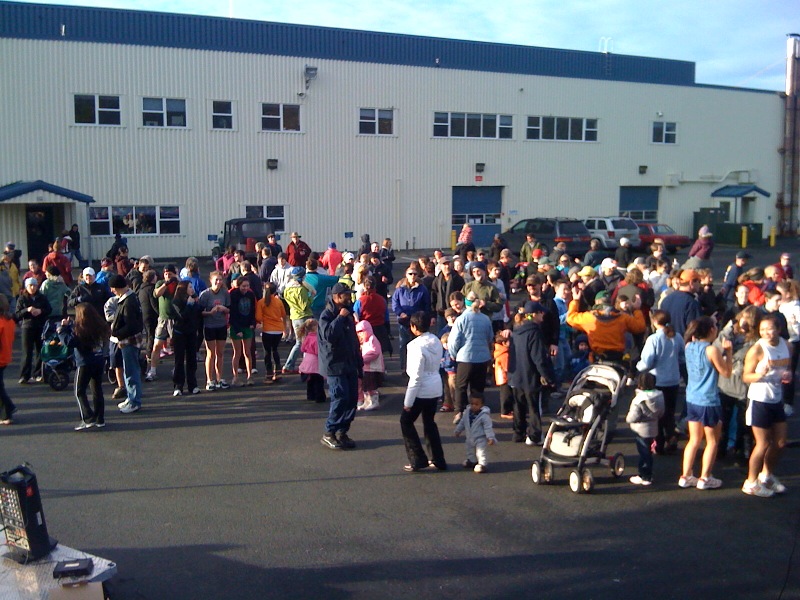 Sitkans do the “Hokey Pokey” to warm up before Saturday's run.