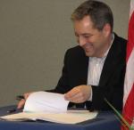 SITKA, ALASKA Governor Parnell took the occasion of his visit to Sitka to ceremonially sign his first bill into law since taking office last July. Senate Bill 59 allows the use of electric cars on highways in communities of fewer than 35,000 people.
