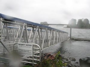 High winds lash the O'Connell Bridge dock. The last three cruise ships of the season cancelled their Sitka port calls.
