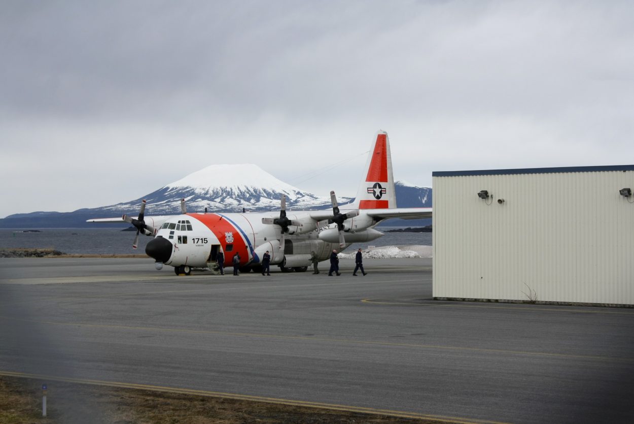 Coast Guard aviators arrive at Air Station Sitka for a meeting with Rear Adm. Thomas Ostebo, the commander of the Coast Guard in Alaska. Ostebo called the meeting to go over the final report of a 2010 helicopter crash that killed three people from Air Station Sitka. The crash also resulted in disciplinary action against the co-pilot and sole survivor, Lt. Lance Leone. (KCAW photo/Ed Ronco)