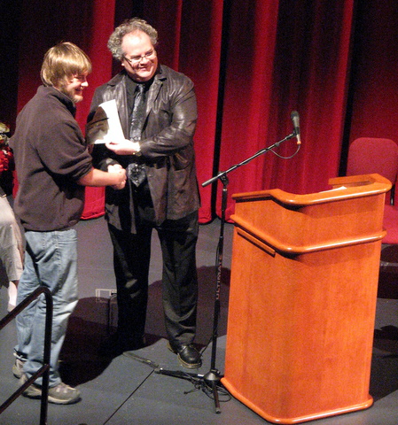 Sitka High freshman Owen Fulton was among many students — mainly seniors — honored at the school’s annual awards ceremony Monday afternoon (5-14-12). Fulton was acknowledged by director John DePalatis for his outstanding contribution to the music program. Local businesses and organizations handed out tens of thousands of dollars in scholarships to graduating seniors. Some of the big winners: Richard Bekeris, Sara Rasmussen-Rehkopf, and Zephyr Feryok each won Alaska Pulp Corporation scholarships worth $20,000.