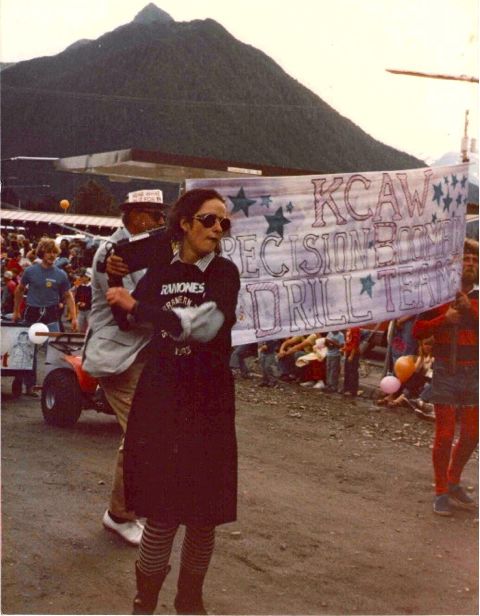 There’s not much more we can tell you about this picture than you can figure out for yourself. (Isn’t that Marika Partridge out front in the Ramones t-shirt?) KCAW’s Precision Boombox Drill Team was a high concept for its time, circa 1982. The station broadcast the music, and the team members marched (after tirelessly rehearsing the precision choreography). If you’ve ever wished that Raven Radio would revive this tradition, your wish will come true on July 4, 2012. Call Mollie Kabler at 907-747-5877 for details.
