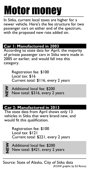 There are nearly 10,000 vehicles registered in Sitka, and the additional tax is expected to raise more than $900,000 a year. Reif says it makes sense that money for the roads should come from the people who use them.