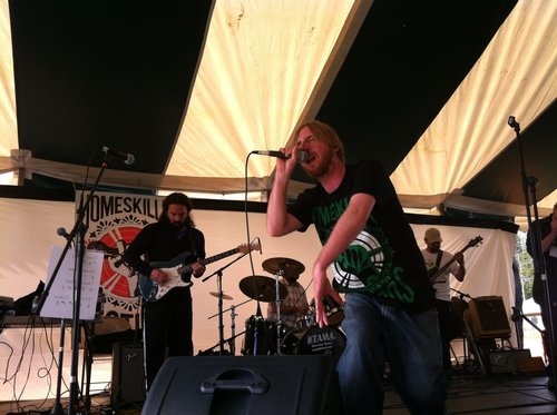 Meathead and friends perform Saturday night at the Homeskillet Festival. The annual music festival takes place at Sea Mountain Golf Course. Also pictured: Joe Montagna on guitar, Ed Littlefield on drums, and Dan Littlefield on bass. Gary Gouker is on the edge of the frame, playing harmonica. J Bradley, not pictured, joined the group on keys. (KCAW photo/Ed Ronco)