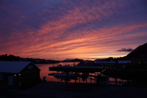 Sometimes working late isn't all bad. This was the view from the news studio window at Raven Radio, over the Petro Marine fuel dock on Wednesday night. Not too shabby. (KCAW photo/Ed Ronco)