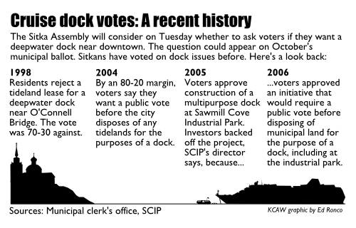 Should Sitka have a dock for cruise passengers near downtown? The Sitka Assembly will decide Tuesday whether to ask voters that question. It’s not a new question, and in Part 1 of this series, you heard about the economic factors that have brought it back up for discussion.