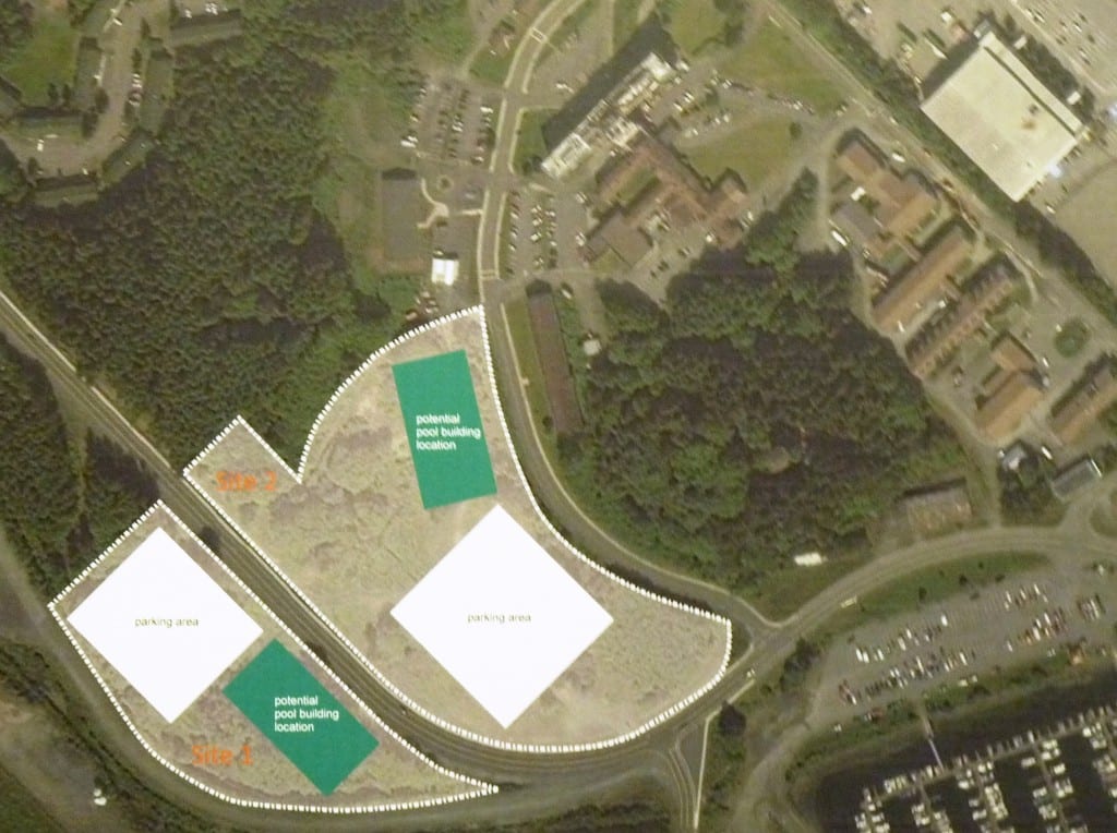 Meissner brought drawings showing four locations under consideration. Here are photos of those drawings. The pool building is green and parking is white.