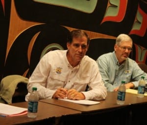 U.S. Fish & Wildlife Service Director Dan Ashe listens during a sea otter roundtable at the Sheetka Kwaan Naa Kahidi in Sitka on Saturday, Aug. 25. (KCAW photo/Ed Ronco)