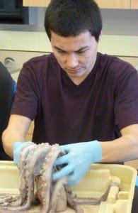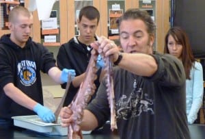 Dissections – formally called necropsies – are difficult for some students. At least one lost her lunch during Brewer’s octopus class.