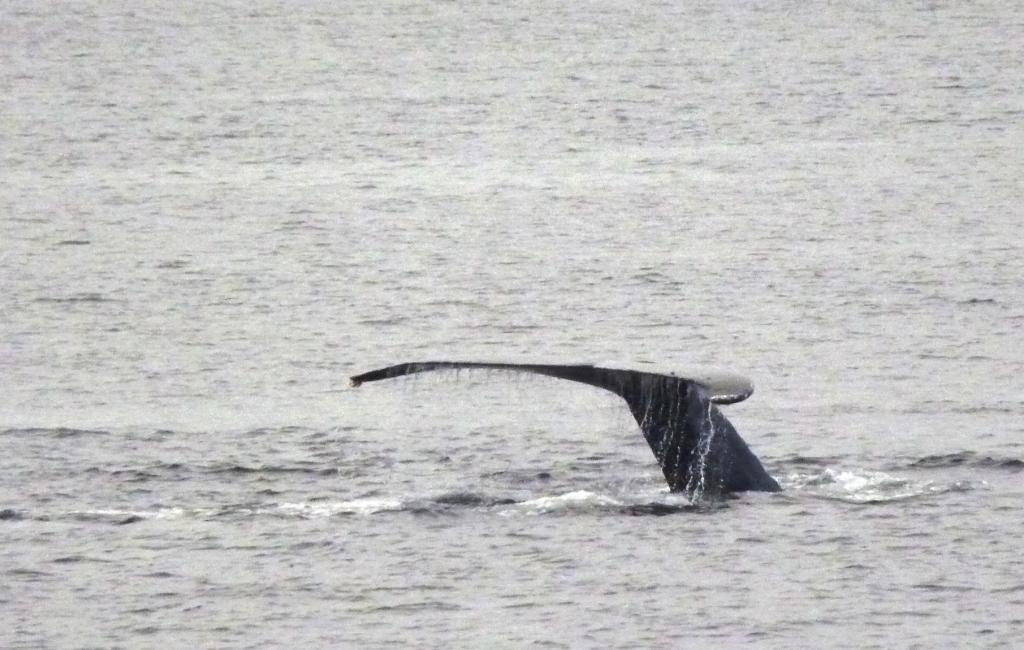 Passengers watch several whales arch their backs, show their tails and dive. Captain Dunlap asks everyone to keep their eyes open.