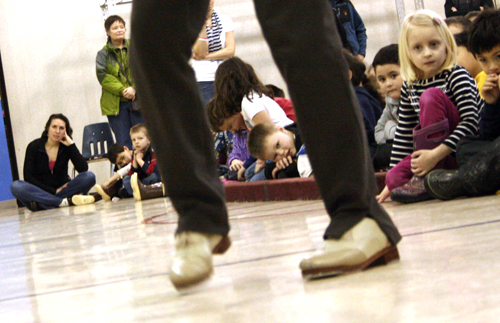 Kramer told students that tap dancing is like having a conversation — you say something and the other person responds. (Photo by Anne Brice/KCAW)