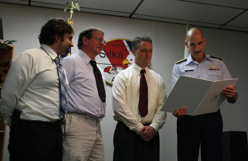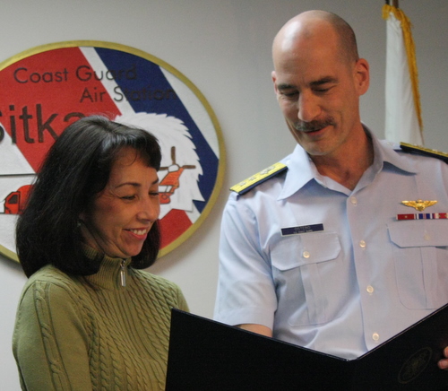 The Coast Guard also presented an award to Cmdr. Ward Sandlin, the commanding officer at Air Station Sitka. It honors his work with the Coast Guard in Clearwater, Fla., including the mobilization of Coast Guard rescue and relief efforts following the Haiti earthquake in January 2010.