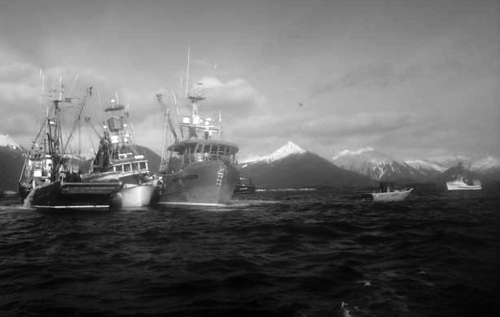 Today at 3 p.m. was the first opening of Sitka’s lucrative commercial herring fishery. About 48 boats were on the water fishing until it came to an end for the day a few minutes after 6 p.m. The fishery area was between Bieli Rock and Makhnati Island.