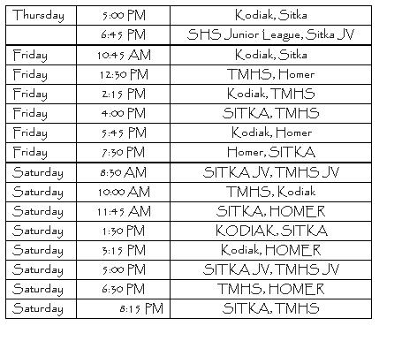 The three-days of play open Thursday evening with the Sitka Lady Wolves taking on Kodiak at 5 PM. There will be a JV game after at 6:45 PM.