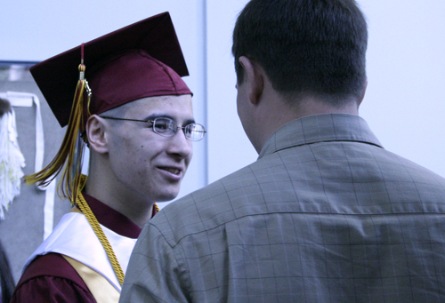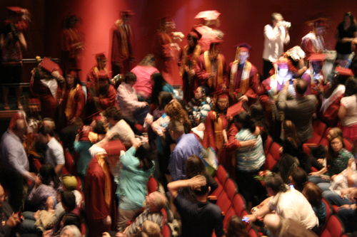 As 68 Mt. Edgecumbe seniors walk slowly onto the stage, one-by-one, families take photos and video with their cameras and smart phones. (Photo by Anne Brice/KCAW)