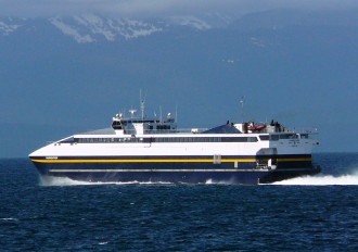 The fast ferry Fairweather sails near Angoon in Chatham Strait in 2010. (Photo by Ed Schoenfeld, CoastAlaska News)