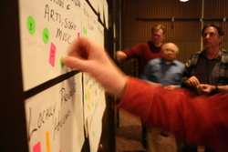 Attendees at the Sitka Economic Development Association’s 2013 Economic Forum vote on ideas to help Sitka’s economy. Helping with the further development of the Sheldon Jackson campus, and Sitka’s arts community, was among the top vote-getters. So was mining. The Assembly will decide whether to explore Sitka’s mining potential during its Tuesday meeting. (KCAW photo by Ed Ronco)