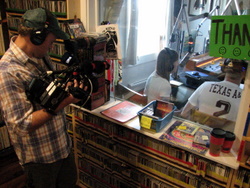 Brooks & Caitlin Crawford spin tunes with Jess Gibson on the Good Day Show on Tuesday. (KCAW photo/Robert Woolsey)
