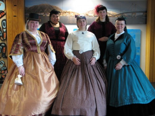 In the days leading up to Alaska Day, TSA employees aren’t the only ones in uniform at Sitka’s Airport. There is also a committed group of ladies dressed in 1860s style day dresses. The hoop skirts, petticoats and decorative hats let you know that they share the same mission: getting visitors psyched for Alaska Day.