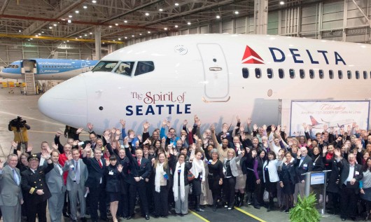 Delta Air Lines unveils a new jet, Spirit of Seattle, dedicated to the city. (Courtesy Delta Air Lines)