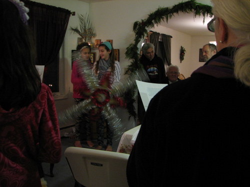 Carolers gather around the spinning star at the home of Fr. Michael Boyle on Russian Christmas. This practice is known as “starring”, according to Orthodox tradition. (KCAW photo/Emily Forman)