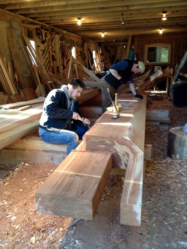 Carving shed scene – Eric Hammer (front) and Harley Bell-Holter