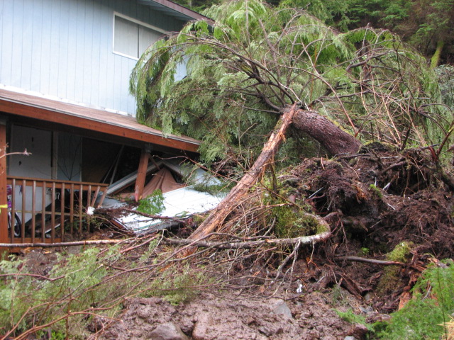 Like a landslide. Curtis says that this is common when freeze thaws and loosens up rocks, soil, and tree roots. One house in the Cascade Creek neighborhood got the brunt of it.