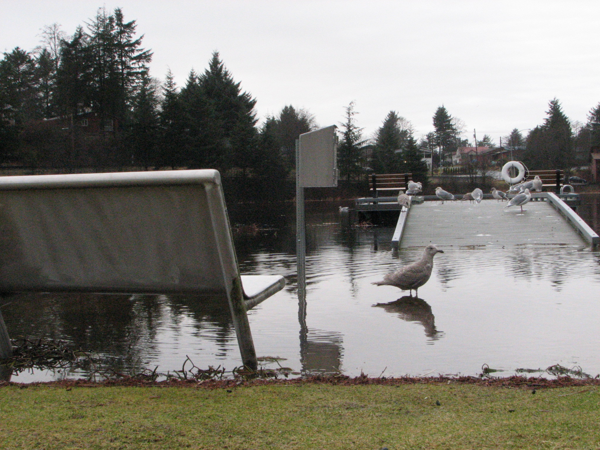 If you’re driving around Sitka today (1-14-14) you might notice that things look a little different. For instance the moose sculpture at Swan Lake is up to its antlers in water. And what was the Indian River trailhead parking lot is now a shallow pond.