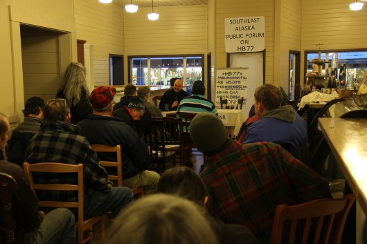 Last week (Thurs 2-13-2014), about 40 people jammed into the Homeport Eatery in downtown Sitka to speak out against a proposed law, House Bill 77. HB77 is part of an effort by the Parnell Administration to streamline the permitting process at the Department of Natural Resources. But some Sitkans are joining a chorus of critics who say the bill goes too far.