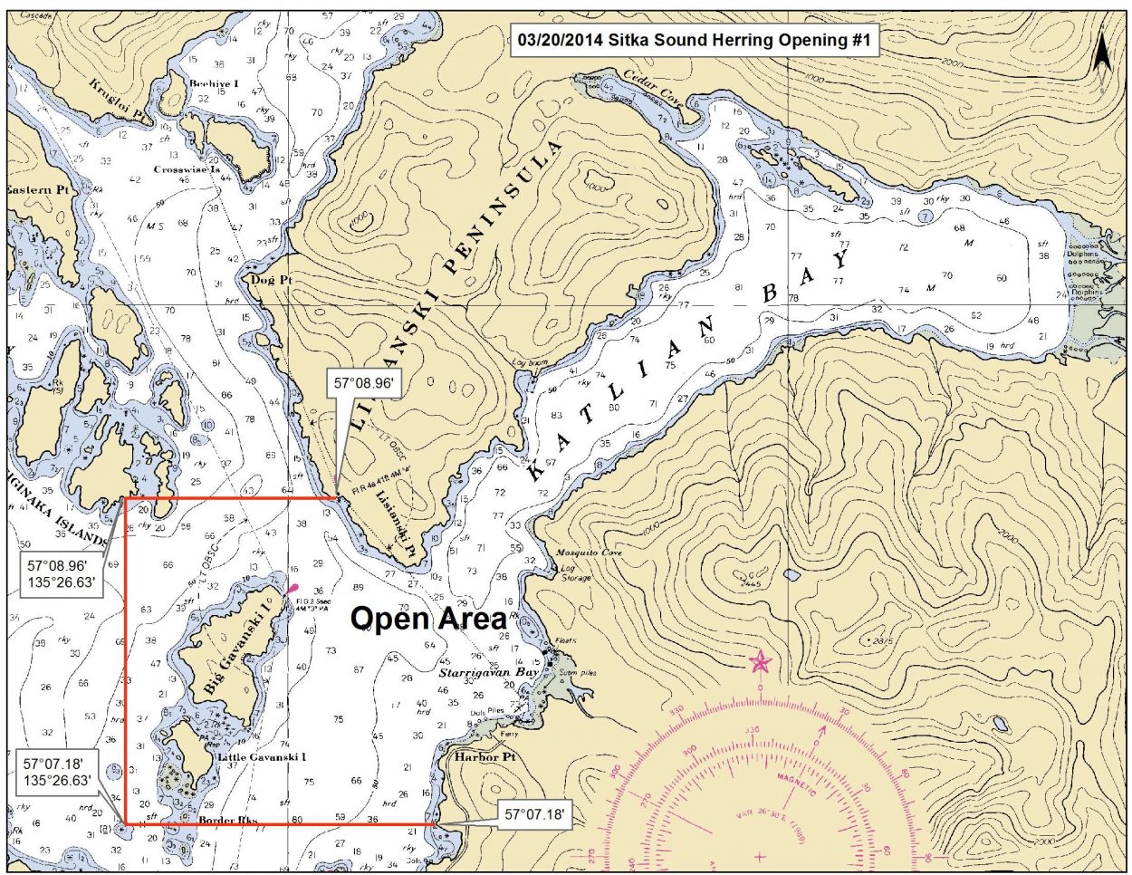 The Alaska Department of Fish & Game has announced that there will be a second opening in the Sitka Sound sac roe herring fishery, around 1:30 p.m. today (Sun 3-23-14). Sunday’s fishery will take place within the same boundaries as Thursday’s season opener, in Starrigavan and Katlian bays.