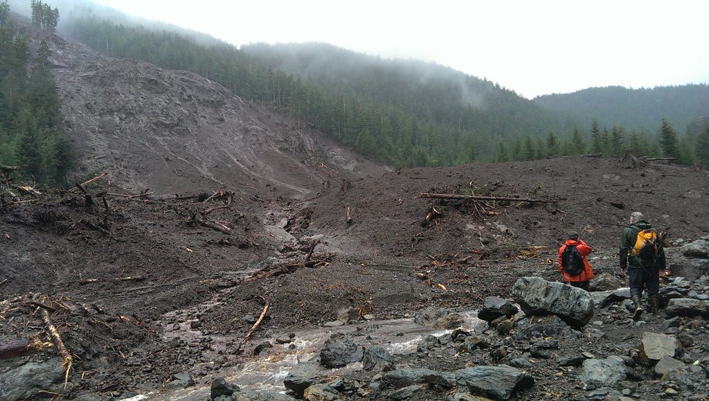 There was not one slide, but three. Two smaller slides across the both the north and south forks of Starrigavan Creek…