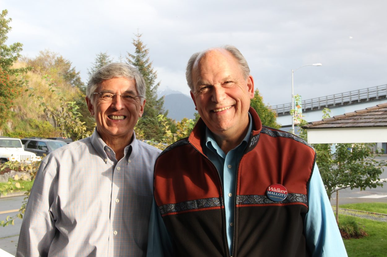 Democrat Byron Mallott (left) and Independent Bill Walker shook up the gubernatorial race when they merged campaigns. (KCAW photo/Rachel Waldholz)