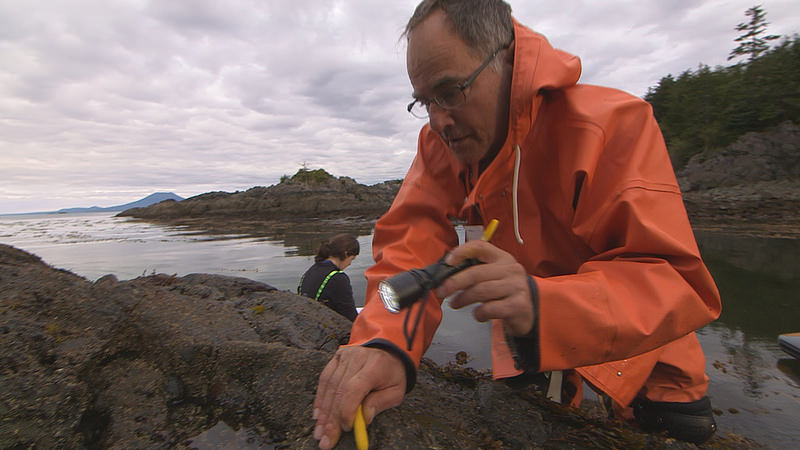 Raimondi works alongside Melissa Miner, a University of California, Santa Cruz, researcher. As waves crash onto the shores of Kayak Island near Sitka, they rope off a patch of shoreline and set to work counting and measuring the creatures that live here.