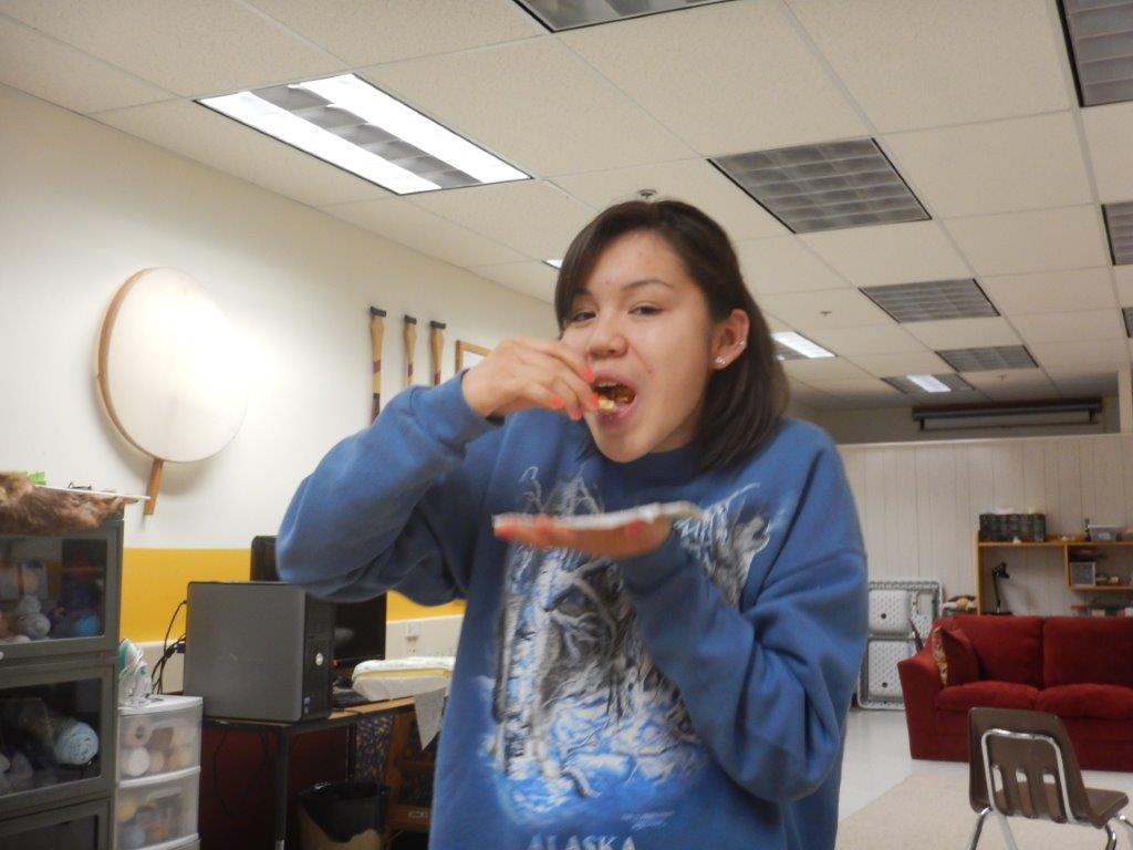 Laura Ekaba, from Minto, first tried salmon caviar when she came to Sitka. (KCAW photo/Rich McClear)