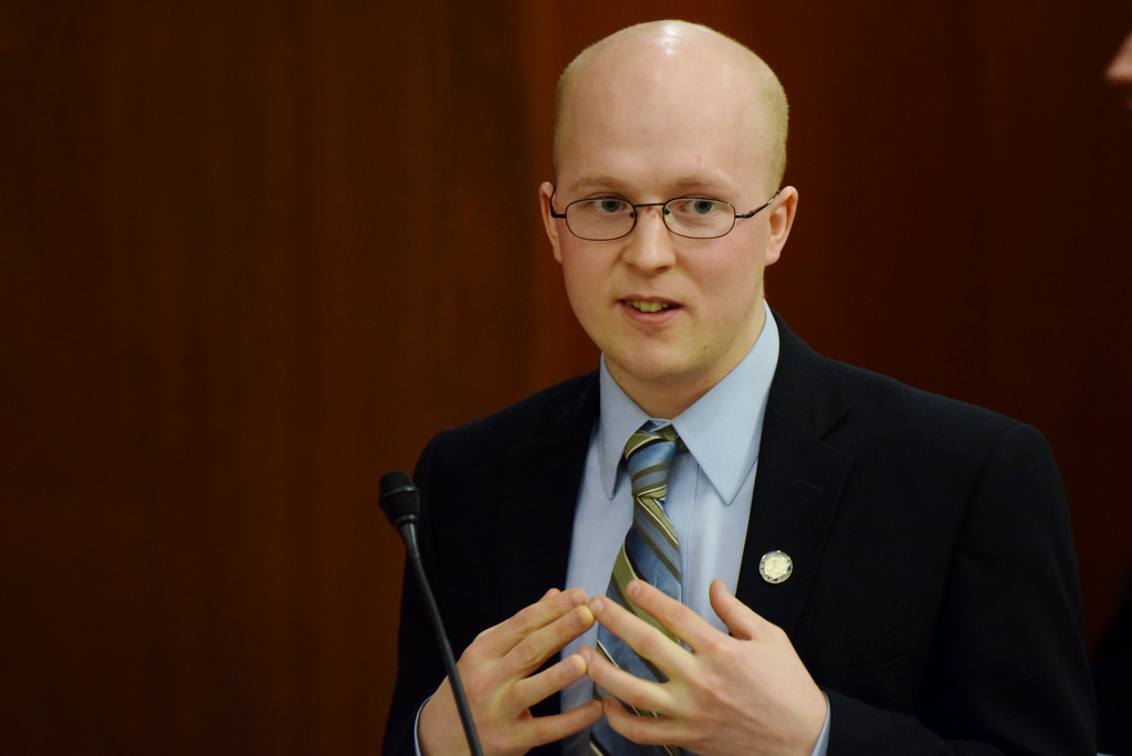 Rep. Jonathan Kreiss-Tomkins addresses the Alaska House of Representatives, March 12, 2014. (Photo by Skip Gray/Gavel Alaska)