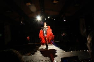 Gio Villanueva wears “Icarus Air,” a wearable art piece designed by Megan Johnson. The piece signifies the hubris of the Greek mythological character Icarus, who built wings but flew too close to the sun. (Photo by Ed Ronco/KCAW)