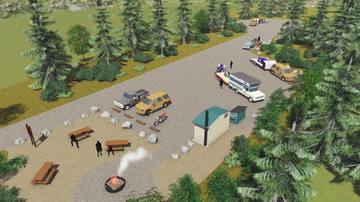 This image illustrates a proposed day-use area for the end of the new Katlian Bay Road. (Image courtesy of DOT)